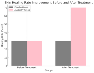 - Skin Healing Rate Improvement: Highlights a significant improvement in the healing rate for the ALOEXR™ group post-treatment compared to no improvement in the placebo group.