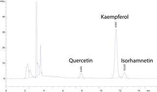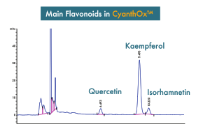 Shown by the HPLC on the right, the main flavonoids found in CyanthOx™ are: Quercetin, Kaempferol & Isorhamnetin