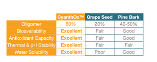 In comparison, CyanthOx™ is 8 times stronger than grape seed extract (Superfoodly.com, 2019) and 1.7 times more potent french maritime pine bark extract (Legault et al., 2013).